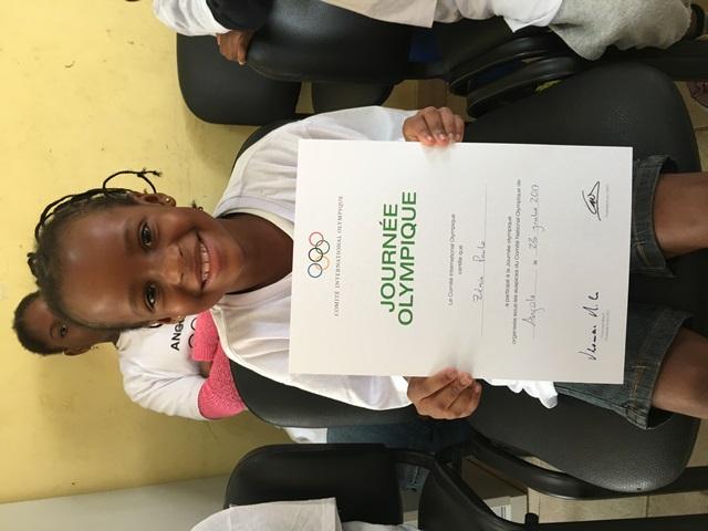 O Evento ocorreu na escola 1056, na capital de Angola, Luanda, com a participação de cerca de 100 crianças, Membros do executivo e Representantes dos diferentes òrgõas Associativimos. Estiveram presentes os representantes das Federações e os Atletas Olímpicos que demonstraram algumas modalidades olimpicas como o atletismo, o Andebol, o Basquetebol, o Judo, o Voleibol aos alunos daquela escola, bem como houve tambem a prática de desennhos olimpicos.