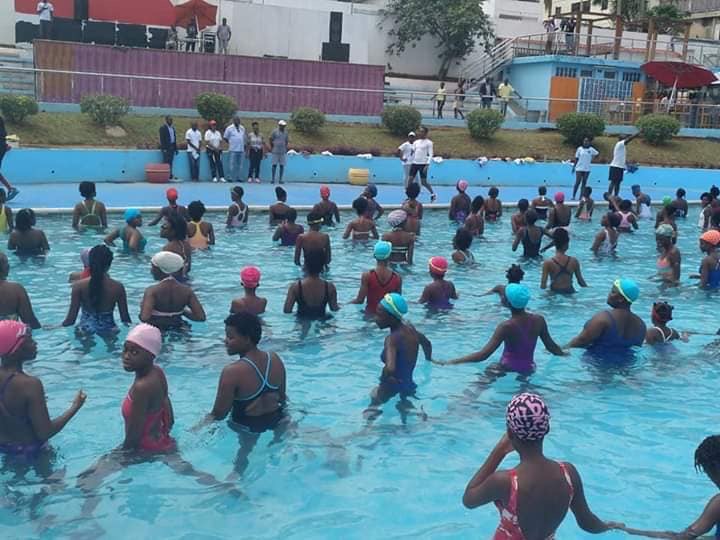 O nosso Ministério da Juventude e desportos junto com a Federação Angolana de Natação e no Complexo da Piscina de Alvalade reuniu senhoras de várias idades para lançar apreendizarem da natação para mulheres com qualquer idade.