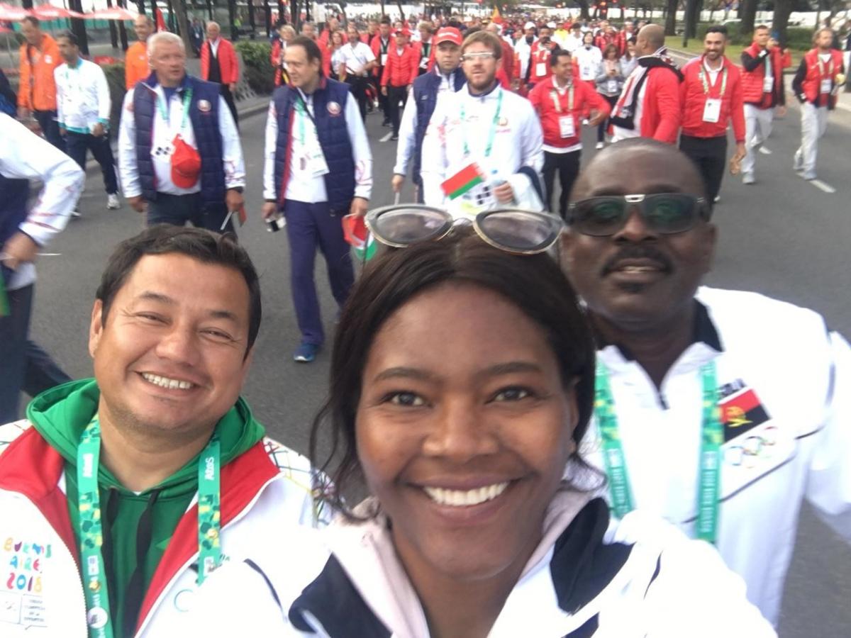 A nossa comitiva é chefiada pela Atleta Olímpica de Andebol Marcelina Kiala (com participações nos jogos olímpicos de Sydney 2000 e Londres 2012), que tem sobre responsabilidade o Técnico de Atletismo Sr orlando Bonifácio e o seu atleta de atletismo Manuek Jacinto Chivelo que participará nos 400 e 800 metros.